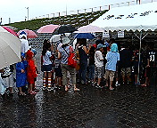 設営がほぼ終わったところで土砂降りの雨。スタッフのみなさんも早めに集まってきた子供達もいったん雨宿りです。今日はお客さんが少ないだろうなぁ〜。