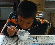 食べ終わってもTシャツの中に避難したままです。暫くしてTシャツの中からブツブツ声がするので確認すると、頭や手だけでなく本もTシャツの中に「持ち込んで」本読みしていました(笑)。小学校4年生ぐらいだと、まだまだ見てて飽きませんね。