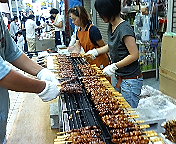 芥川商店街の「夜市」が始まりました。吉田康人はみなさんのお取り計らいで谷川金物グループの屋台で焼き鳥を焼かせていただきました。