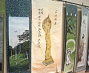 「『文化の日』はもともと何の記念日か知ってる?」と次男へ質問するところから始めた今日の活動(笑)。「今頃そんなことしてんのんかいなぁ」と笑われそうなタイミングですが「屋台に学ぶ会 in 高槻まつり」(8月6日(土)・7日(日)。8月の「やすとログ」で大特集)でお手伝い下さったスタッフのみなさんへのご挨拶回りをさせていただき、高槻現代劇場市民会館へ。あきつ会の展示会を拝見してきました。写真中央は清水会長の絵です。