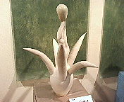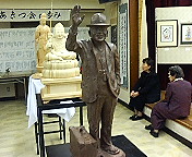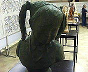 小河原さんの彫刻と絵。どちらも小学校1年生のお孫さんがモデルです。