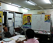 「教育を考える高槻市民の会」会合の後、塩谷さん、前川さんが事務所にずっと詰めて「新・大作戦」の下準備をして下さっていました。最後に、下調べの結果についてディスカッションし「実行あるのみ!」の志を誓い合いました(←大袈裟?)。