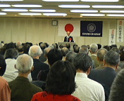 全国カープ会長の松波孝幸さんのご講演。年に一度は松波会長のお話を拝聴するようにしています。今日の演題は「小泉ニッポン 昇る朝日か沈む夕日か」。経済構造改革だけでなく利己主義的な精神構造の改革に着手しなければ日本は良くならないとのお話は全くそのとおりだと思います。