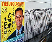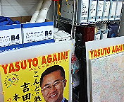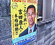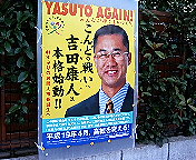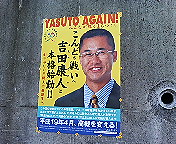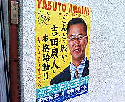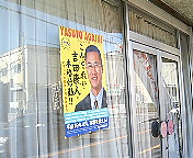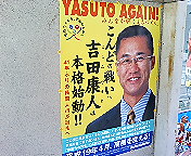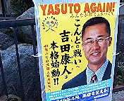 「やすとポスター」第109・110号を鶴田さん、岡本さんに貼らせていただきました。鶴田さんの事務所のものはずいぶん前から貼らせていただいていて街の話題にもなっていたのにご報告が遅れてごめんなさい。鶴田さんのお話ではガラス窓にあるポスターをじっくりご覧下さるかたがたがかなりいらっしゃるとか。ポスターに盛られた文字までお読み下さるかたはほとんどおられないとは思いますが(笑)、浦辻さんにアドバイスいただいて練りに練ったメッセージを書かせていただいています。吉田康人の思いを込めました。立ち止まって下さったみなさんにも感謝申し上げます。