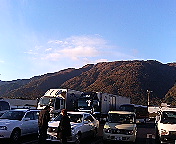 名神高速道路・養老サービスエリア。今朝は4時起き。バスで名古屋へ向かっています。
