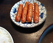 帰宅したのが深夜だったのでもちろん妻が夕飯を既に準備してくれていたんですが、いただいたウインナーを食卓に早速乗せさせていただきました。満足(!)です。