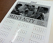 12月11日付「やすとログ」でコンサートの模様をご報告した「メンズアクティ」の特製カレンダーができました。マネージャーの太田貴子さんがお持ち下さいました。事務所内で使うだけじゃもったいないし、それに、やすと事務所前は二中の子らが毎日おおぜい通るので、歩道に面したガラス窓に今は貼ってあります。メンズアクティ・メンバーのお子様がたが通う二中でも話題になれば良いと思います(笑)。