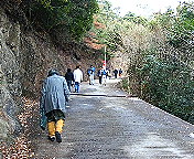 正月3日。これから本山寺へ登ります。駐車場から急な山道をさらに30分弱歩きます。妻は骨折した足の具合がまだ充分はよくならないので今日は父、母、長男を連れて登ります。