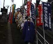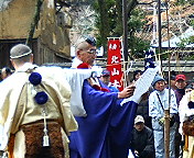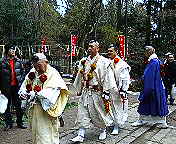 「初寅会柴灯大護摩供」が始まりました。本山寺ご住職(最後尾)以下、僧侶のかたがたが納経堂から本殿へ向かいます。