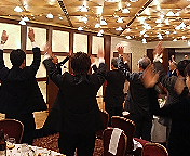 誓いの言葉を改めて唱え会歌を斉唱しいよいよ吉田康人の出番、万歳三唱です。記憶では4年連続となりますがやはり、会友のみなさんに不快な思いをさせてはならないとの思いから、緊張が高まります。しかし、ここでも「巧く」やることよりも声に「魂を込める」ことに専念。