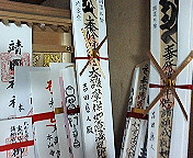 本殿前でご神体の大きなお札へお祈りをお捧げします。