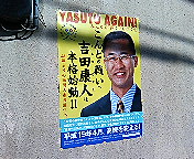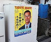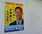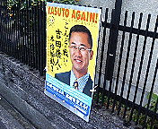 岩野さんのお宅から事務所へいったん戻り、今日も、ポスター隊によって昨日貼付させていただいたお宅16軒へのご挨拶回り。先週末がんばりすぎて体調が少し悪かったんですが、スタッフがそれぞれがんばって下さっているので、吉田康人もがんばれました。今日はいろんなご意見をおうかがいすることができたなぁ〜。