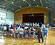 最初に、高槻市立川西中学校ブラスバンド部の演奏。子供達が楽しめる曲、親にとって懐かしい曲を織り交ぜて演奏を披露。みんな、喜んでたなぁー。