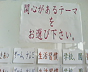 来場者に、関心をお持ちのテーマを選んでいただき、そのテーマ札を胸に貼ったうえで入室していただくという工夫もしました。我ながら「簡素な作業で実現できた」と満足しています。