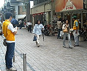 このキャンペーンでも「自転車は降りて下さい」とスタッフのみなさんが声掛け。それでも降りない、商店街に並ぶ何人ものスタッフから連続して注意されても降りない人もいる。その様子を眺めながら歩いていた吉田康人も自転車に轢かれそうになりました(笑)。