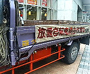 商店街入口には自転車撤去用のトラックも待機。