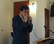 地域の人々が代わる代わるハーモニカ(写真)、リコーダー、ピアノの演奏で、そして、スピーチなどで池田ご夫妻との楽しい思い出を振り返りました。吉田康人からも聖書にある「一粒の麦」のお話をさせていただきました。