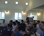 冷房付きだったものの4階ということもあり「子育て茶話会」(写真)への入場者数は少数にとどまりました。でも、「友達づきあい」、「生活習慣」、「ゲーム・テレビ」など多岐にわたるテーマについてお話が楽しく弾みました。地元で公文教室をやっておられる和泉先生、芥川小学校の山木校長先生を初め、みなさんのご協力に感謝申し上げます。