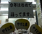 まだ覚えきっていないのに、津田先輩が吉田康人を途中「拉致」し川添奥様軍団へも召集を掛けて下さり、「吉田康人に江州音頭、河内音頭、高槻音頭を一気に覚えさせるにはどうしたら良いか」、突然、作戦会議。奥様がたは話が早い!。方針も直ぐ固まりました。ありがとうございました。がんばりま〜す(^_^;)。
