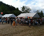 芥川商店街を出て川添へ。細谷さん、甘中さんと待ち合わせです。駐車場で浴衣に着替えようとしたんですが帯の結びかたがイマイチわからない。と、ちょうどその時、和服をお召しの女性が前をお通りになられたので思わず「結んで下さ〜い」(笑)。事なきを得ました。ラッキー(^^)v。
