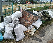 芥川美化奉仕会のメンバーが今朝も黙々と拾い集めたゴミの山。ソファーまで芥川を流れてくるのです。これらは自然発生したのではありません。ほとんどがポイ捨てや不法投棄によるものです。芥川は決して美しくありません。それでも、黙々とにこやかに清掃活動を続ける芥川美化奉仕会。市内にはこのほかにもたくさんの清掃活動をしている人々、組織があります。その心こそが美しいと言えます。