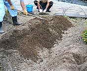 今日は、清掃活動と同時に、先日の豪雨で流されてしまった花壇の再生活動。津之江の堤防沿いを走ると見られる「川をうつくしく」という文字が草花で書かれた、あの花壇です。
