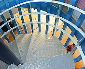 上の階へは螺旋階段で上ります。もちろん、危険防止の柵付ですよ。