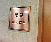 副大臣室は、入口入って直ぐが秘書官の執務室になっていて、その奥にあります。写真は秘書官室と副大臣室との間にある扉横の武見副大臣の表札です。役所の中にあっては数少ない静かで、かつ、靴が絨毯にちょっぴりめり込む(笑)場所です。