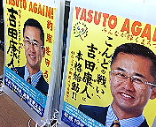 今日はいつになく、チラシをお取り下さるかたがたが多かった。国会がテレビ中継されていることなども微妙に影響しているんでしょうか?。吉田康人の魅力だけだとは、とても思えません(大笑い)。