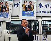 地域のスーパー前では、尼崎市議会議員・丸岡鉄也さん(谷川さんと同じ会派「新政会」に所属。「 http://0bbs.jp/maruoka/ 」)が応援演説。