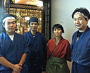 店長(写真右端)以下みなさんが「やすとショット」をOKして下さいました。今回も美味しい料理をたっぷり、ありがとうございました。