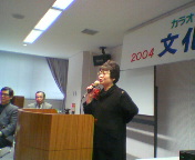 高槻市カラオケ文化協会の前田先生(2004年11月4日付「やすとログ」参照)が先頭に立ってお手伝いしておられました。「地道に毎年やってたら会員がこんなに増えた」と嬉しそうにおっしゃっておらました。前田先生がおっしゃるとおり、吉田康人が市長となりましたら現代劇場の文化ホールでカラオケ大会をやりましょうよ!。今日はありがとうございました。(前田先生の今日のお写真は、誤って消してしまい、代わりに2004年11月4日のものをアップしました)