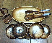それでも、なんか、タダでもらえるってぇのは嬉しいもんで、コツコツ貯めてます(笑)。これまでに、タイムズ特製マグカップ、そして、先日はサラダボウル・セット(写真)をもらいました。左上の端はマヨネーズ立て。初めて見た(笑)。街頭演説の密かな、そして、ささやかな楽しみです(^_^.)。
