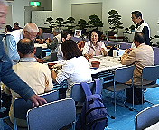 さつき盆栽が展示された部屋でつくりかたの講習会が行なわれていました。