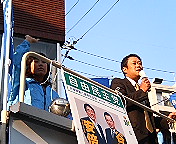 代表幹事で寝屋川市議会議員・南部はじめさん(写真)を初め「関西若手地方議員決起の会」のメンバーが次々に応援演説のマイクを握りました。