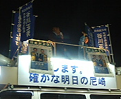 政治活動用街頭宣伝車にはウグイス嬢の、のりりんこ、さやかちゃんも乗り込み本戦モードに既に入っています。