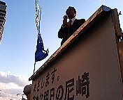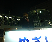毎週週末の夕刻(17:00〜19:00)は恒例の街頭演説。今週は、明日(金)が祝日のため、今日(木)行いました。場所はJR摂津富田駅南口。17:30になるとほぼ真っ暗になるこの時季、電灯がないこの場所での演説はつらいものがあります(^_^;)。居酒屋のチラシを配っていたお兄さんも「ここホンマ、人、おらんッスよね。暗いし寒いしねぇ〜」って言ってました(笑)。「人、おらん」わけではないのですが、電車が着いた時以外は人の流れが疎らなのは事実です。