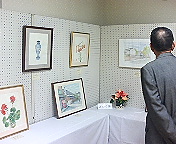 「あきつ会」会長の清水先生にはいつも大変お世話になっています。右が清水先生、左が岩本さんの作品。。