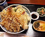 噂に違わず凄い(!)天丼やった。しかも、味噌汁と漬物などが付いて700円台です。天ぷらがてんこ盛りでご飯になかなか行き着かないんですが(笑)、その天ぷらの味とサクサク感とがとても大切にされています。てんこ盛りですから上のほうの天ぷらはご飯に触れていません。しかも、タレではなく塩で味付けされているのでホンマ、サクサクなんです。