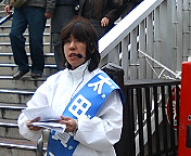 今春の高槻市議会議員選挙予定候補者の太田貴子さんは、芥川地区福祉委員会委員長として同委員会の屋台を取り仕切りながら、一方で、会場近くで街頭演説&チラシ配布。エライ!、ガンバレ!!。