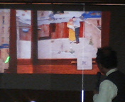 幻燈(スライド)を使っての講談調のお話。先生は「まちづくりの講談師」とも呼ばれているとのこと。