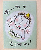 自作のかわいい絵葉書に力強いメッセージ。「若い力で変えてな!」。さらにここまで書かれてしまっては(笑)涙を抑えることは難しい。「朝早くから総持寺のうどん屋さんの角でがんばった日々をいつまでも忘れないで下さい」。