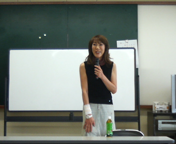 約50分の講演が終わり質疑応答。あらゆる質問へ真摯に答える梶子ママ。吉田康人の中学、高校の先輩です。