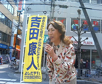 大阪府議会議員選挙の期間中は、法律の定めにより、吉田康人の政治活動はできません。もちろん、街頭演説も。そこで、同選挙告示日の前日、松坂屋前で一生懸命演説していましたらヤクルトをたくさん差し入れていただきました。ボランティア・スタッフの人数も多かったのですがヤクルトは足りました。ありがとうございました。