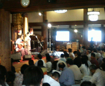連盟大会会場の高槻市立第一中学校を出て本澄寺(上牧町)へ。ご住職さまからご招待いただいた「平和な心を! 本土と沖縄が共に歩む 海勢頭豊『世直し』コンサート at 本澄寺」へ参加してきました。主催は「映画GAMA・MABUI上映高槻・島本実行委」。