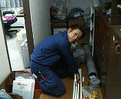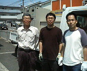 真上事務所の収納家具など大型備品の運び出しもほぼ終わりました。スパボ(スーパー・ボランティア)有志のかたがたがお集まり下さりお手伝いいただきました。ひとり、ふたりではとてもできない作業なので助かりました。写真右から笠原さん、大吉さん、松下さん。「やすとショット」し損なったんですが、楠田さんにも細かい備品の整理で妻をサポートしていただきました。