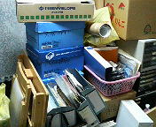 再利用可能な備品は大吉さんの事務所に引き取っていただきました。ただ、大吉さんの事務所はエレベーターのないビルの4階(!)。みんなで、汗びっしょり、体が悪くなるかと思うくらい力を振り絞って、非常に狭い階段を荷物を担いで上がりました。お疲れさまでした、ありがとうございました。