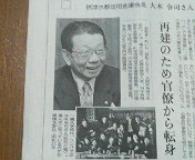 産経新聞夕刊の「いま、語る 関西人国記」で摂津水都信用金庫会長・大木令司先輩の連載が今日から始まりました。大木先輩は、吉田康人にとっては一橋大学、社団法人高槻青年会議所の大先輩。6月27日付で同金庫会長を退任、相談役となられます。