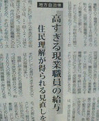 昨日付「公明新聞」が「主張」欄で地方自治体の現業職・現業職員のありかたを鋭く批判、また、提言しています。同紙が指弾している「現業公務員給与の対民間比較」は7月7日付「やすとログ」でも取り上げました。まず、比較表の部分だけ再掲します。