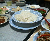 昨晩のオフ・ミーティングはみなちんの家で行いました。写真はみなちんを初め女性スタッフ手製のそうめんとその薬味(豊富!)。